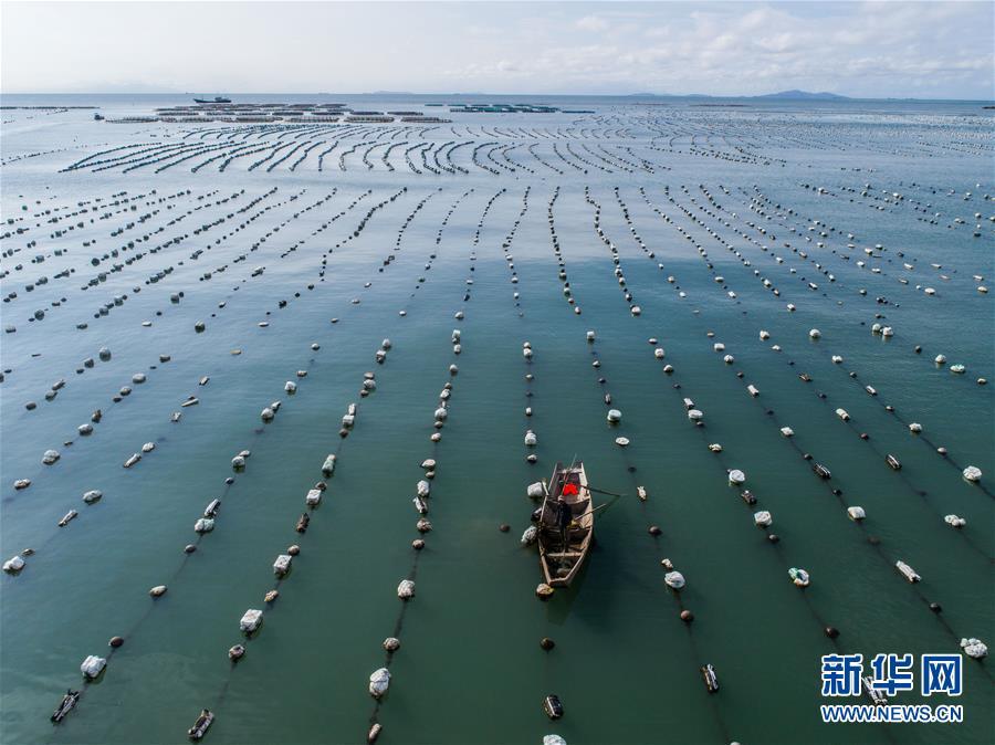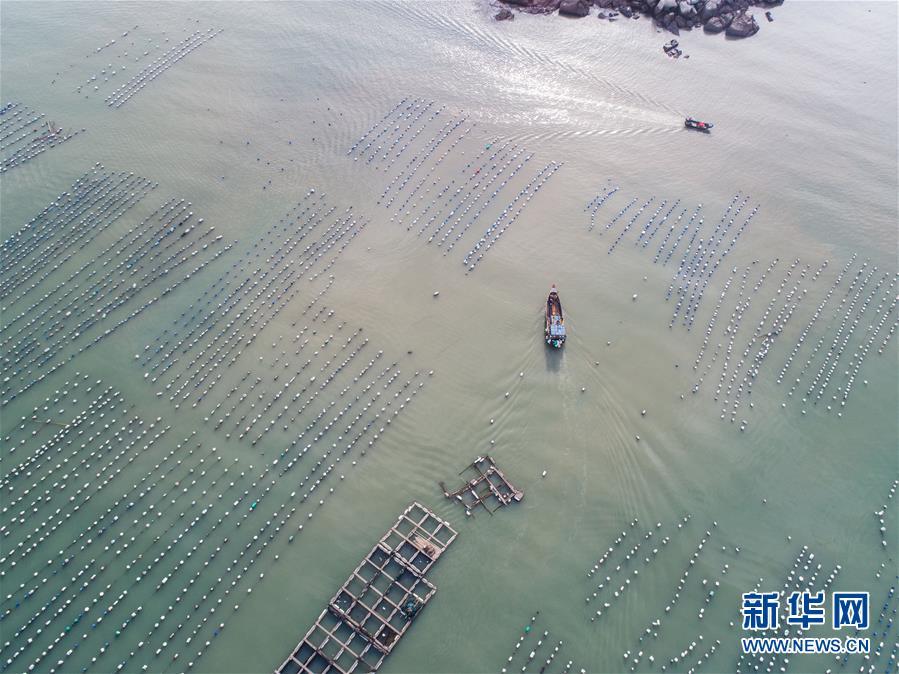 8月18日,南麂島馬祖岙海灣內,養(yǎng)殖戶乘船在貽貝養(yǎng)殖區(qū)內作業(yè)(無人機拍攝)。進入8月,浙江省溫州市平陽縣南麂鎮(zhèn)海域上大片的大黃魚、貽貝等特色海產品養(yǎng)殖區(qū)域迎來豐收季節(jié),養(yǎng)殖戶們駕駛漁船在養(yǎng)殖區(qū)海域進行打撈收獲,在碧海藍天下構成了一幅“海上牧場”的美麗豐收景象。近年來,南麂鎮(zhèn)政府引導漁民養(yǎng)殖戶充分發(fā)揮“靠海吃?!钡馁Y源優(yōu)勢,大力發(fā)展海洋養(yǎng)殖經濟和海島旅游經濟,實現(xiàn)了南麂由“生態(tài)美”向“產業(yè)美”,“產業(yè)美”向“經濟美”的轉變。同時該鎮(zhèn)堅持以大黃魚、貽貝等為特色產業(yè)支撐,精準發(fā)展高效海洋養(yǎng)殖業(yè),重點培養(yǎng)一批新型職業(yè)漁民,依靠專業(yè)技術支持,實現(xiàn)深海仿生養(yǎng)殖,讓好生態(tài)造就好品質,重點打造南麂養(yǎng)殖品牌,組建營銷網(wǎng)絡,拓展特色海產品市場。新華社記者 徐昱攝