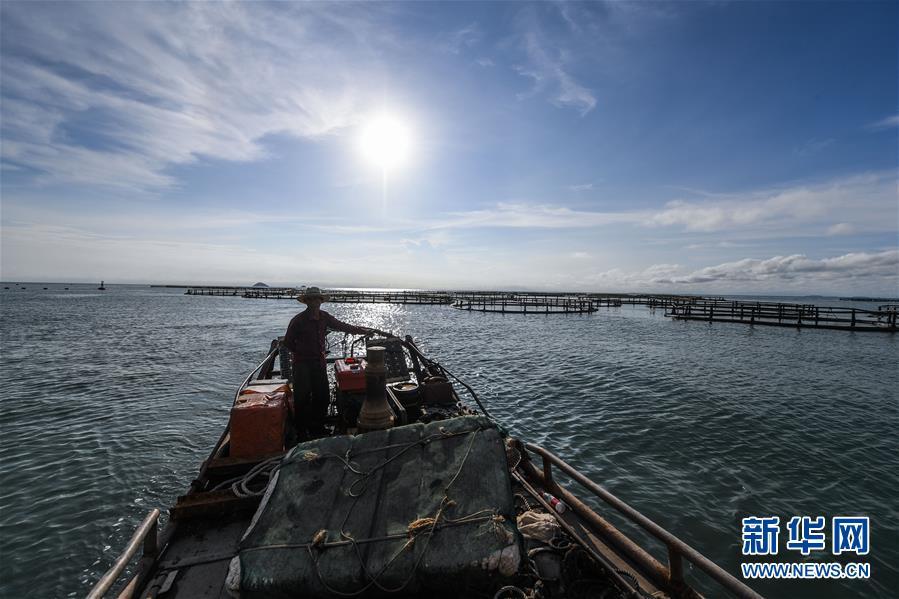 8月18日,南麂島海域的“海上牧場”養(yǎng)殖區(qū)內,漁民駕駛漁船進行養(yǎng)殖作業(yè)。進入8月,浙江省溫州市平陽縣南麂鎮(zhèn)海域上大片的大黃魚、貽貝等特色海產品養(yǎng)殖區(qū)域迎來豐收季節(jié),養(yǎng)殖戶們駕駛漁船在養(yǎng)殖區(qū)海域進行打撈收獲,在碧海藍天下構成了一幅“海上牧場”的美麗豐收景象。近年來,南麂鎮(zhèn)政府引導漁民養(yǎng)殖戶充分發(fā)揮“靠海吃海”的資源優(yōu)勢,大力發(fā)展海洋養(yǎng)殖經濟和海島旅游經濟,實現(xiàn)了南麂由“生態(tài)美”向“產業(yè)美”,“產業(yè)美”向“經濟美”的轉變。同時該鎮(zhèn)堅持以大黃魚、貽貝等為特色產業(yè)支撐,精準發(fā)展高效海洋養(yǎng)殖業(yè),重點培養(yǎng)一批新型職業(yè)漁民,依靠專業(yè)技術支持,實現(xiàn)深海仿生養(yǎng)殖,讓好生態(tài)造就好品質,重點打造南麂養(yǎng)殖品牌,組建營銷網(wǎng)絡,拓展特色海產品市場。新華社記者 徐昱攝