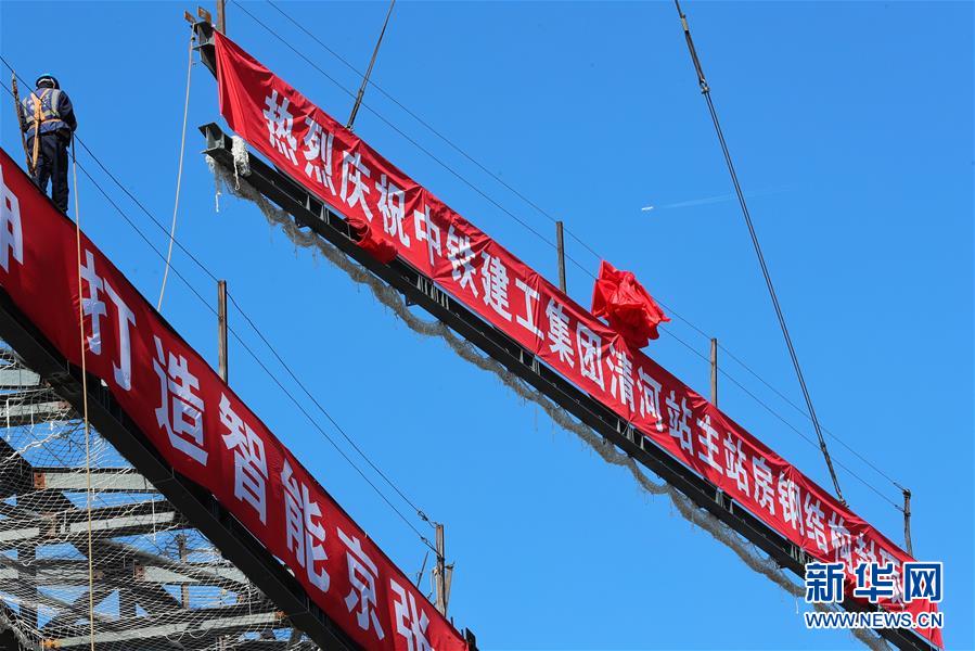10月17日,工作人員在吊裝鋼梁。當(dāng)日,京張高鐵新建車站——清河站主體結(jié)構(gòu)正式封頂。清河站是京張高鐵建筑面積最大的車站,同時(shí)也是京張高鐵在北京地區(qū)的始發(fā)站之一。 新華社記者 邢廣利 攝