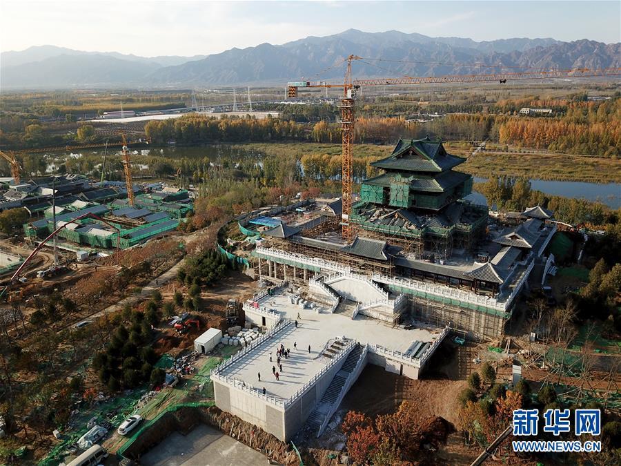 10月18日拍攝的建設中的北京世園會永寧閣(無人機拍攝)。 新華社記者 羅曉光 攝