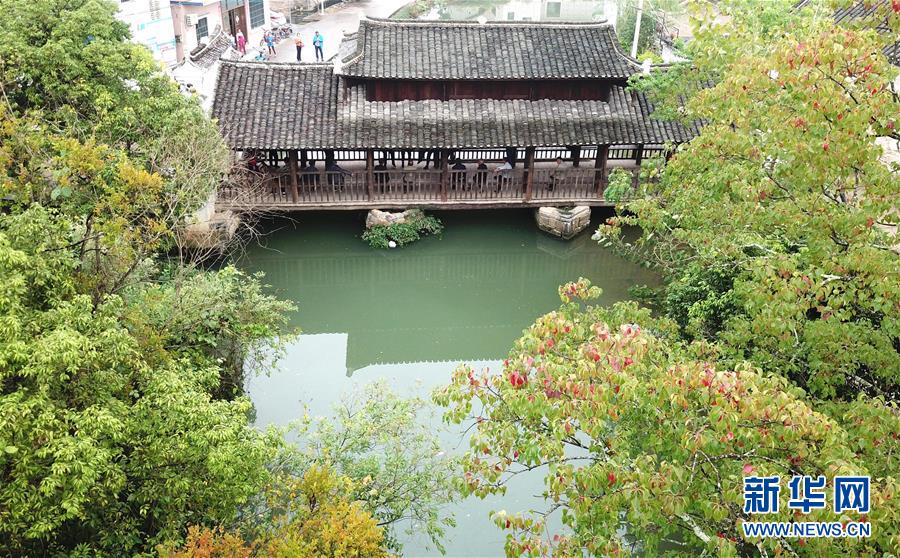 有著數(shù)百年歷史的廣西富川瑤族自治縣朝東鎮(zhèn)東水村風雨橋(10月19日無人機拍攝)。 新華社記者 周華 攝