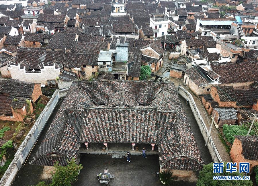 廣西富川瑤族自治縣朝東鎮(zhèn)岔山村連片古民居群(10月19日無人機拍攝)?!⌒氯A社記者 周華 攝