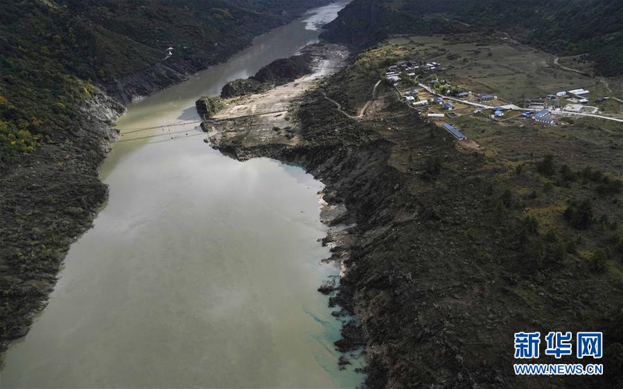 10月20日拍攝的西藏雅魯藏布江米林縣堰塞湖自然過流后的加拉村。 10月19日13時30分,西藏雅魯藏布江米林縣堰塞湖開始自然過流。記者從應(yīng)急管理部牽頭的聯(lián)合工作組獲悉,截至20日7時,雅魯藏布江堰塞湖壩前水位已下降56米,估算留存水量1.6億立方米,堰塞湖洪水威脅得到緩解,防洪安全風險大大減輕,并將繼續(xù)降低。 10月20日,記者乘坐直升機從空中拍攝了雅魯藏布江堰塞湖自然過流的畫面。 新華社記者普布扎西攝