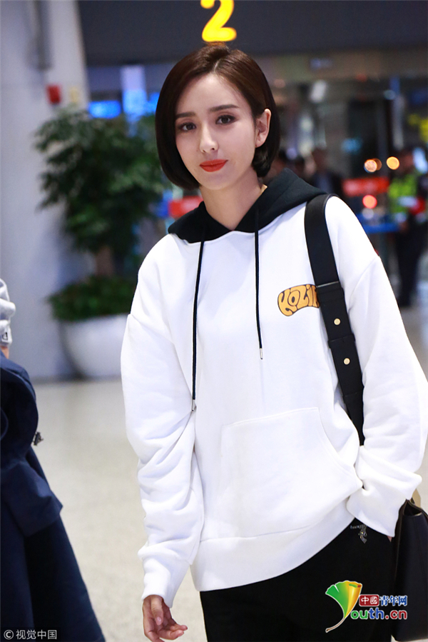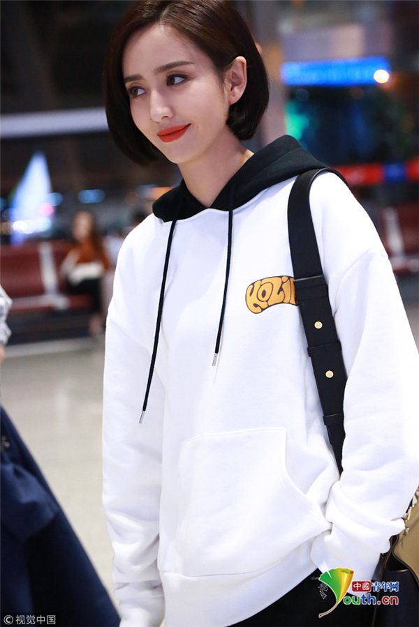 10月18日,湖南長沙, 佟麗婭錄完《快樂大本營 》現(xiàn)身長沙機(jī)場(chǎng),她梳利落短發(fā)穿連帽衛(wèi)衣,笑容甜美氣質(zhì)佳。