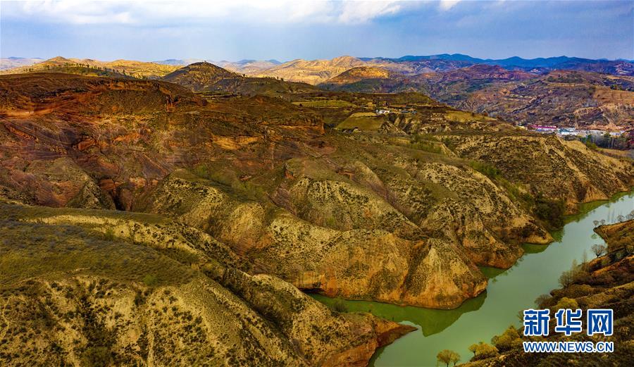 10月21日無人機拍攝的黃昏時分的王家灣丹霞地貌。 新華社記者陶明攝