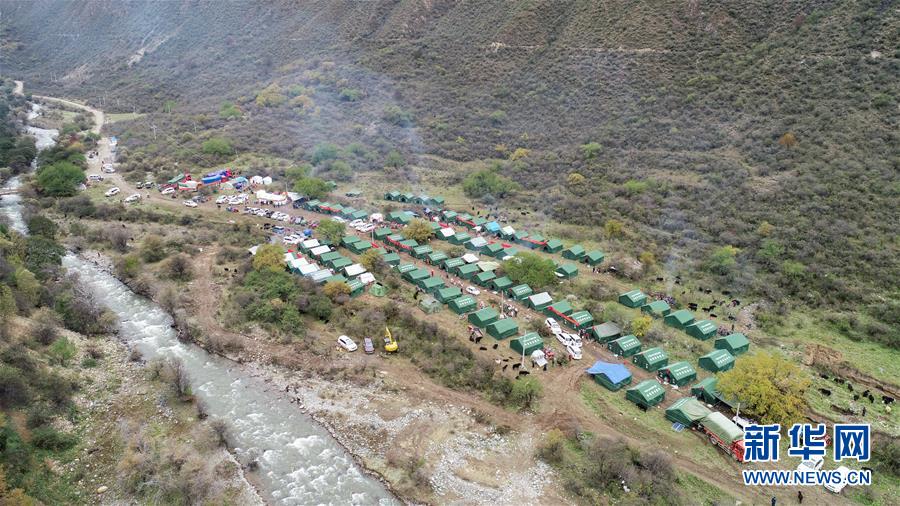 這是西藏昌都市江達(dá)縣波羅鄉(xiāng)熱多村臨時(shí)過(guò)渡安置點(diǎn)(10月14日無(wú)人機(jī)拍攝)。新華社記者劉東君攝