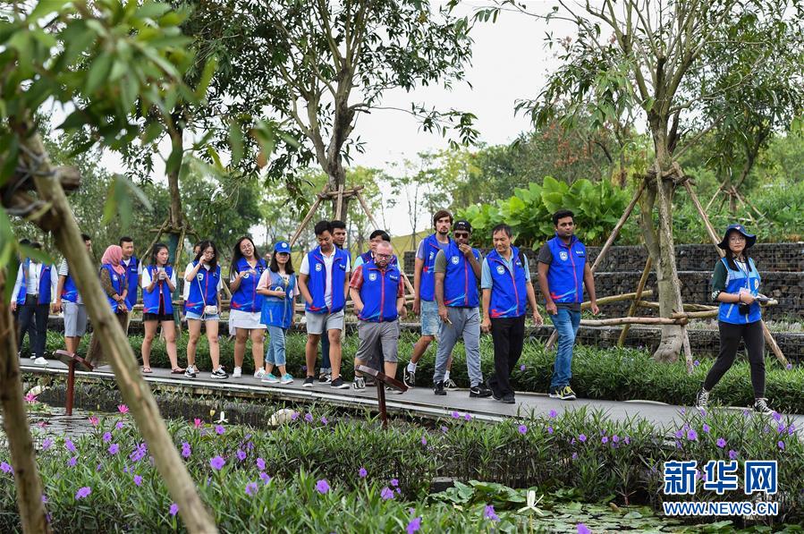 在??谑忻郎岷峪P翔濕地公園,參加濕地保護志愿服務講解員培訓的留學生志愿者一邊參觀一邊聽中國志愿者講解(10月21日攝)。 ??谑续P翔濕地公園內(nèi)流水潺潺,綠草如茵。很難想象,這個市民游客休閑散步的好去處、具有強大污水凈化功能的濕地公園,兩年前還是臭氣熏天、人們避之不及的垃圾堆填場。 把生態(tài)文明建設放到更加突出的位置,近兩年來??谑幸詽竦爻鞘薪ㄔO為突破口,不斷創(chuàng)新城市生態(tài)治理,著力改善生態(tài)民生,在生態(tài)文明建設上闖關探路。 新華社記者 楊冠宇 攝