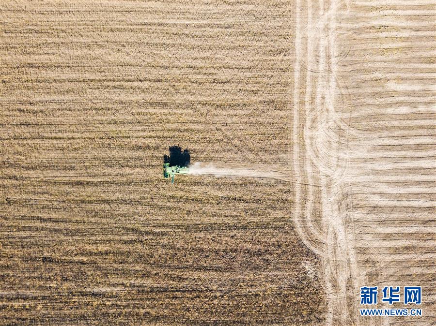 收割機(jī)在俄羅斯猶太自治州比羅比詹市附近的大豆農(nóng)場里作業(yè)(10月19日攝)?!⌒氯A社記者張若玄攝