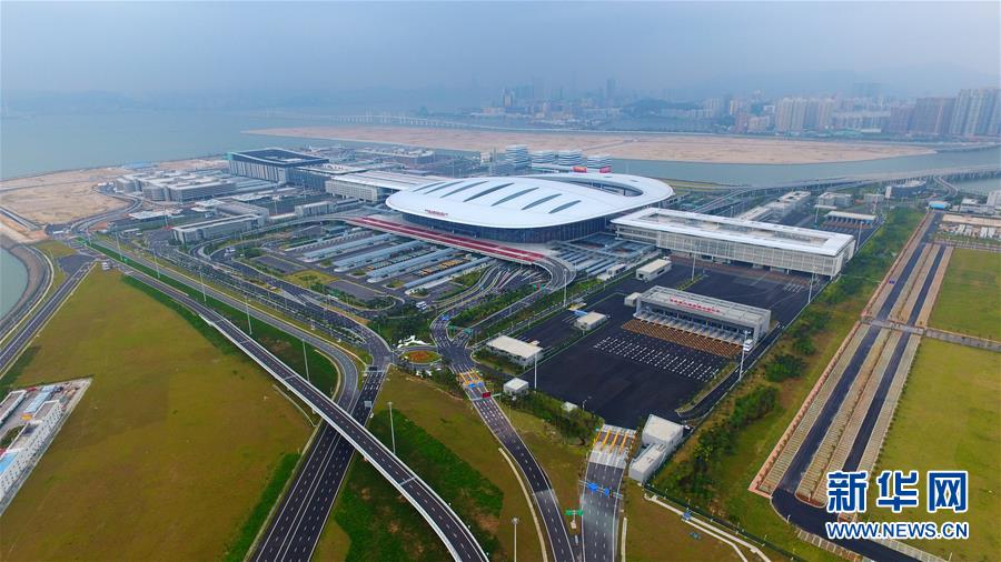 10月24日無人機拍攝的港珠澳大橋珠海公路口岸。當日9時,港珠澳大橋正式通車。 新華社記者梁旭攝