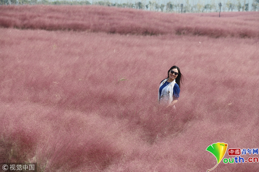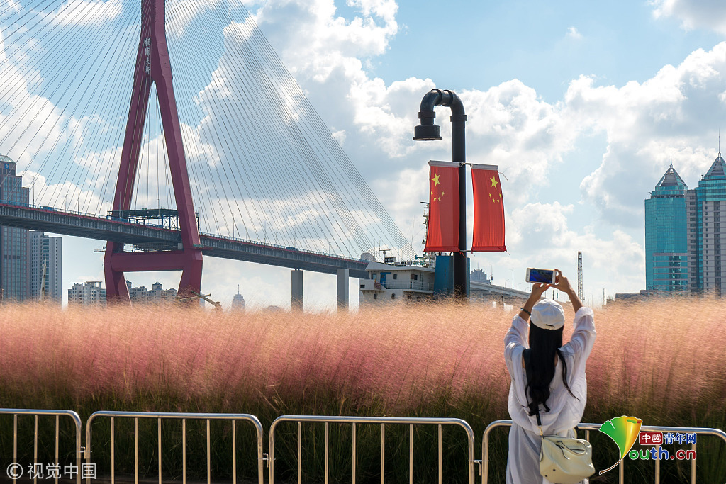 上海楊浦濱江粉黛亂子草成片盛開 美不勝收