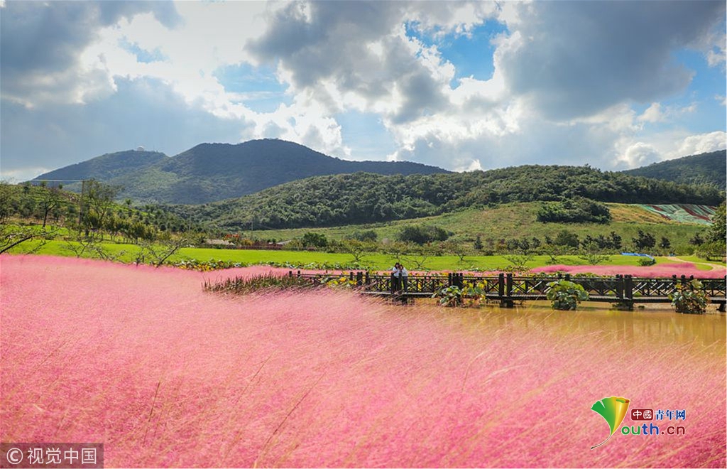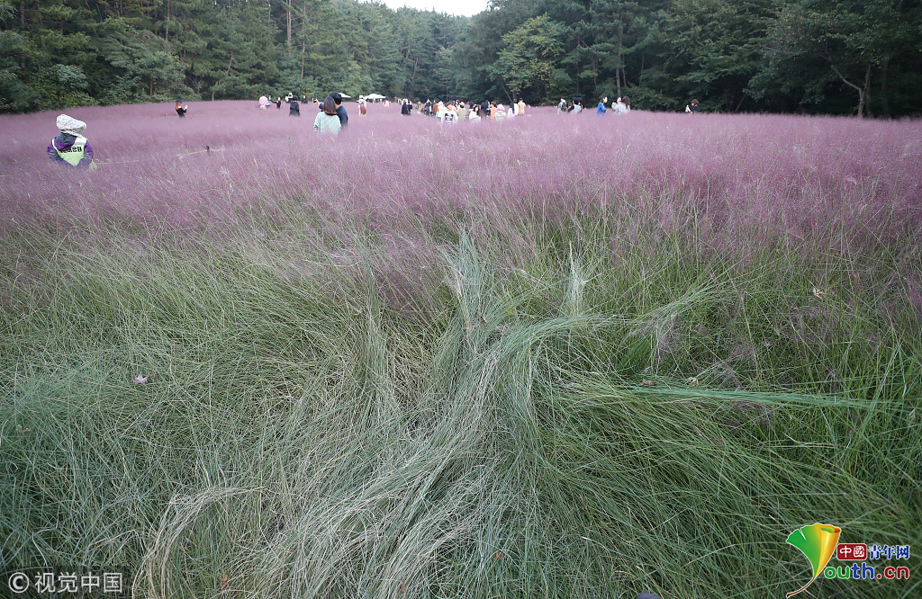 當(dāng)?shù)貢r(shí)間2018年10月16日,韓國蔚山,近日,蔚山公園大片粉黛亂子草盛開,粉紅花海浪漫十足,但部分花海遭游客隨意踩踏。圖片作者:Yonhap News Agency