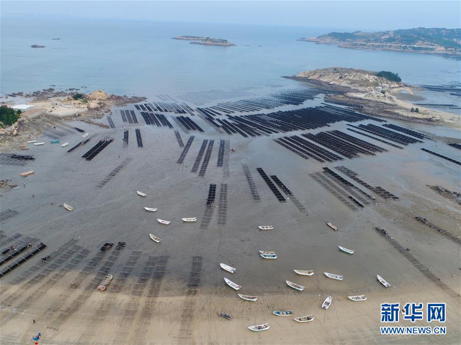 福建莆田蔣山村的千畝紫菜種植基地(10月24日無人機(jī)拍攝)。 新華社記者姜克紅 攝