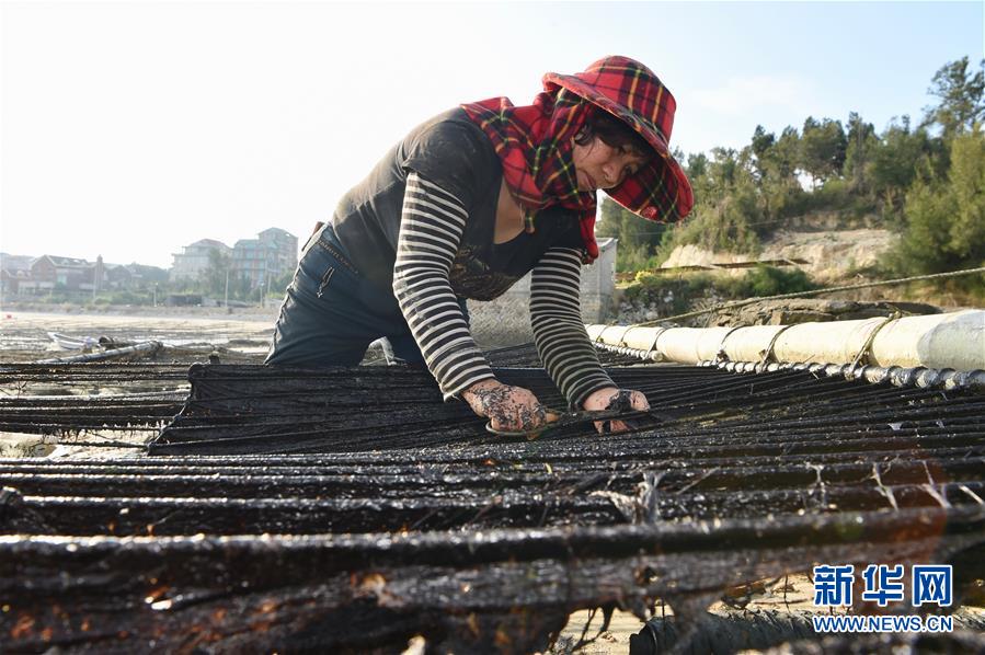 10月24日,福建莆田蔣山村村民在收獲紫菜?! ⌒氯A社記者張國俊 攝