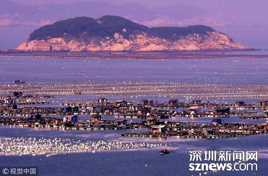 深圳新聞網(wǎng)訊  2018年10月26日,在福建連江海域上,“海上田園”網(wǎng)箱羅列,漁排上搭建的木屋錯落成“戶”,蔚為壯觀,成為一道獨(dú)特的風(fēng)景線。福建省連江縣是中國鮑魚養(yǎng)殖第一大縣。