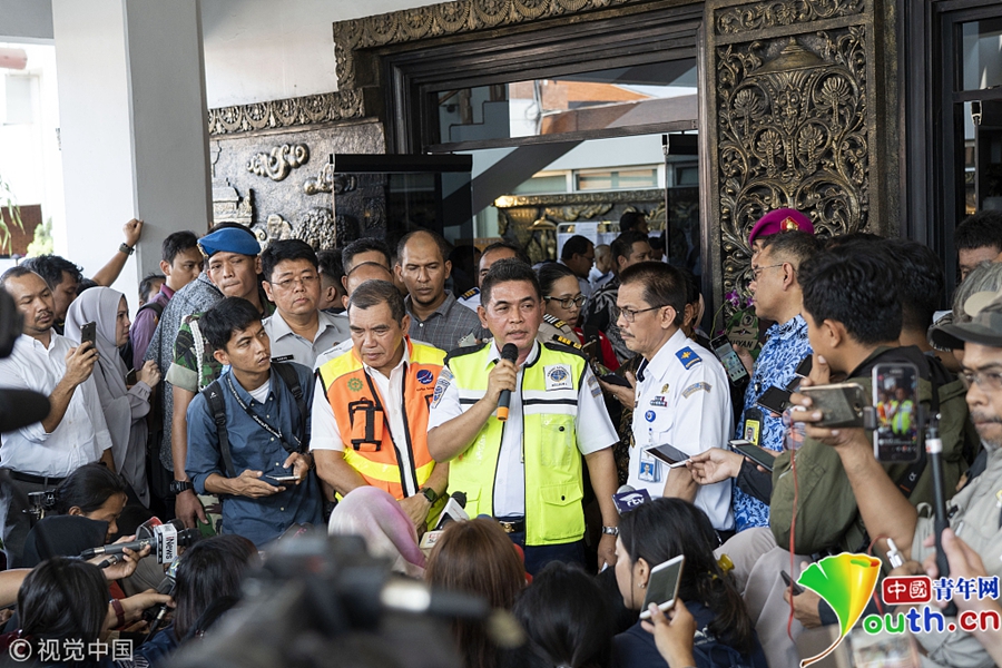 印尼哈達(dá)國(guó)際機(jī)場(chǎng),機(jī)場(chǎng)管理局負(fù)責(zé)人Bagus Sunjoyo就獅航JT610墜機(jī)事件召開記者會(huì)。