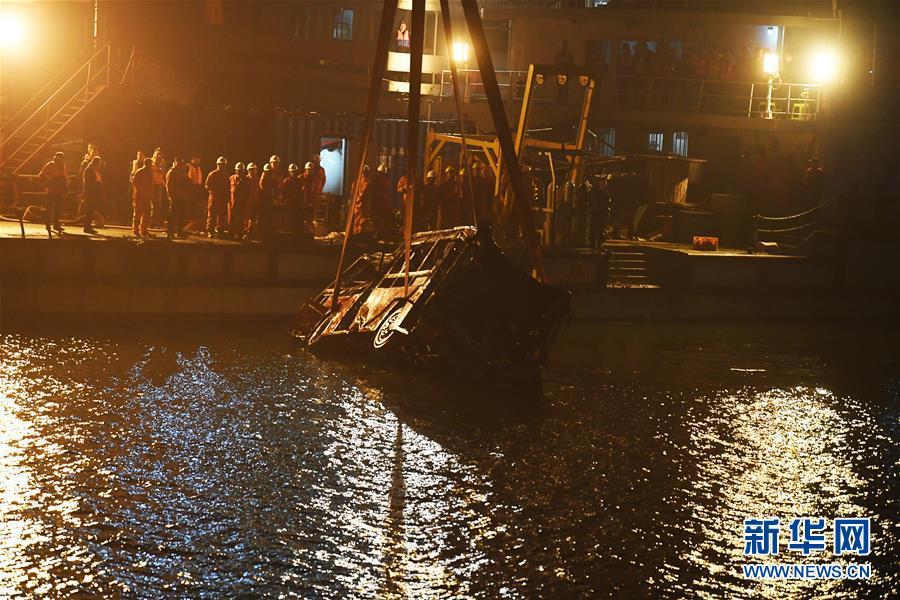 重慶萬州墜江公交車打撈出水