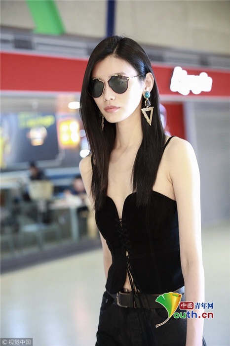 2018年7月25日,上海,奚夢瑤現(xiàn)身機(jī)場,她穿吊帶馬甲配過膝長靴,頻撩發(fā)似女特工。