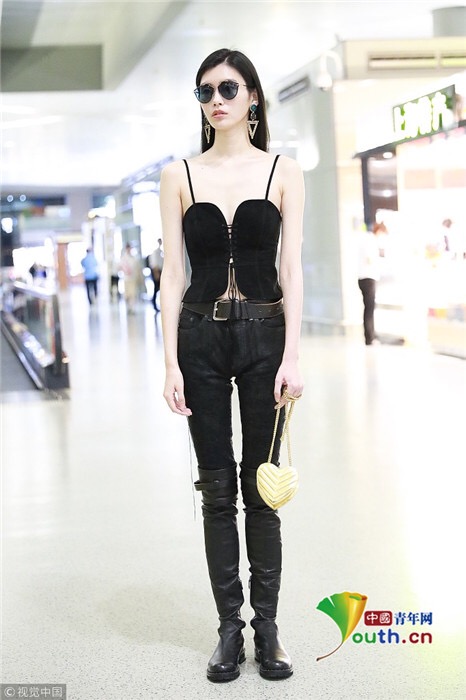 2018年7月25日,上海,奚夢(mèng)瑤現(xiàn)身機(jī)場(chǎng),她穿吊帶馬甲配過膝長靴,頻撩發(fā)似女特工。