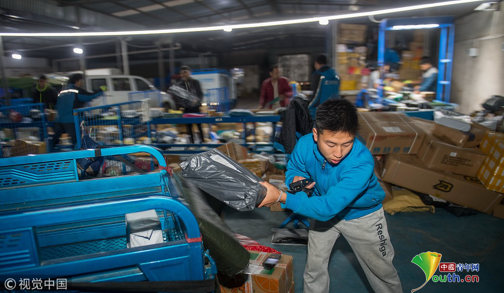 云南省昆明市,攝影師實(shí)拍90后快遞員熊忠桃的一天工作。作為一名快遞員,他25歲就買了房。圖片作者:銳圖