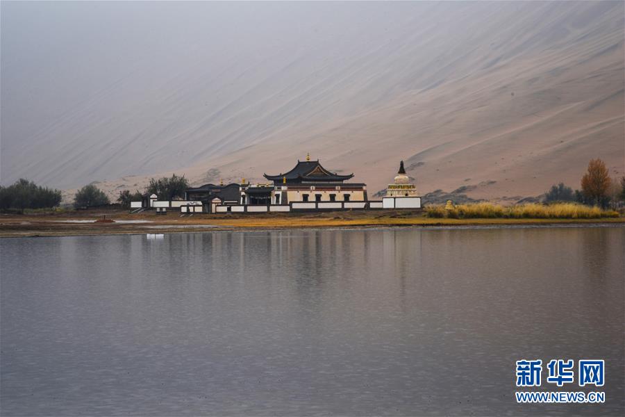 位于沙漠腹地的巴丹吉林廟(10月19日攝)。巴丹吉林沙漠位于內(nèi)蒙古西部阿拉善盟,是中國第三大沙漠,沙丘起伏的曲線陡變成高聳的沙山,碧藍的湖泊散落在沙海間。新華社記者李仁虎攝