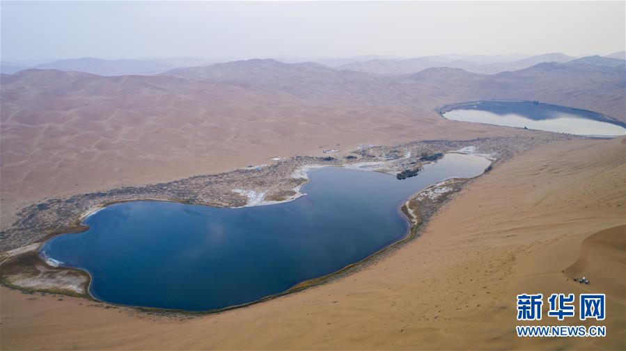 巴丹吉林沙漠中的湖泊,仿佛一顆落在沙中的寶石(10月18日無人機拍攝)。巴丹吉林沙漠位于內(nèi)蒙古西部阿拉善盟,是中國第三大沙漠,沙丘起伏的曲線陡變成高聳的沙山,碧藍的湖泊散落在沙海間。新華社記者達日罕攝