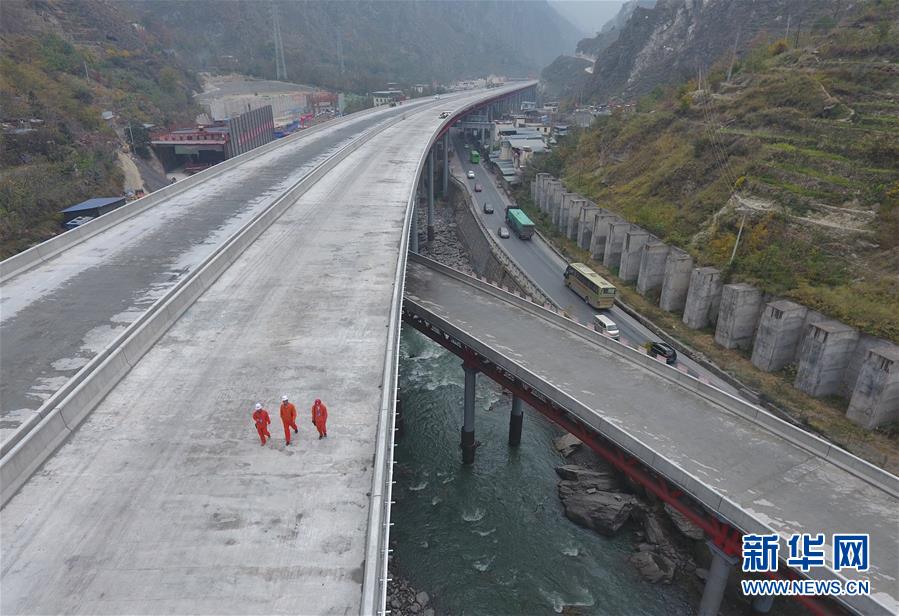 11月3日,工人在克枯大橋合龍現(xiàn)場工作。 當(dāng)日,位于四川省阿壩藏族羌族自治州的汶(川)馬(爾康)高速的控制性工程克枯大橋合龍。 新華社記者 劉坤 攝