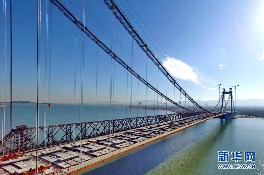 當(dāng)日,河北省懷來縣官廳水庫公路大橋主橋成功合龍。據(jù)介紹,該橋采用雙向四車道城市主干路標(biāo)準(zhǔn)建設(shè),設(shè)計(jì)為雙塔單跨懸索橋,全長1988米, 橋主塔高107.8米,橋?qū)?3.6米,主橋720米一跨過湖。