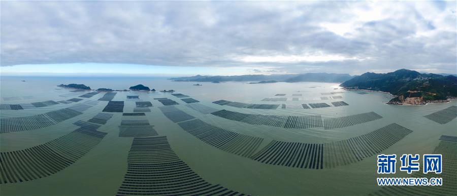 這是11月4日無人機(jī)拍攝的霞浦縣長春鎮(zhèn)的紫菜種植區(qū)(拼接照片)。 近日,福建省霞浦縣沿海6萬畝紫菜迎來收獲季節(jié),漁民們出海收獲紫菜,海上田園一派繁忙豐收景象。 新華社記者 姜克紅 攝
