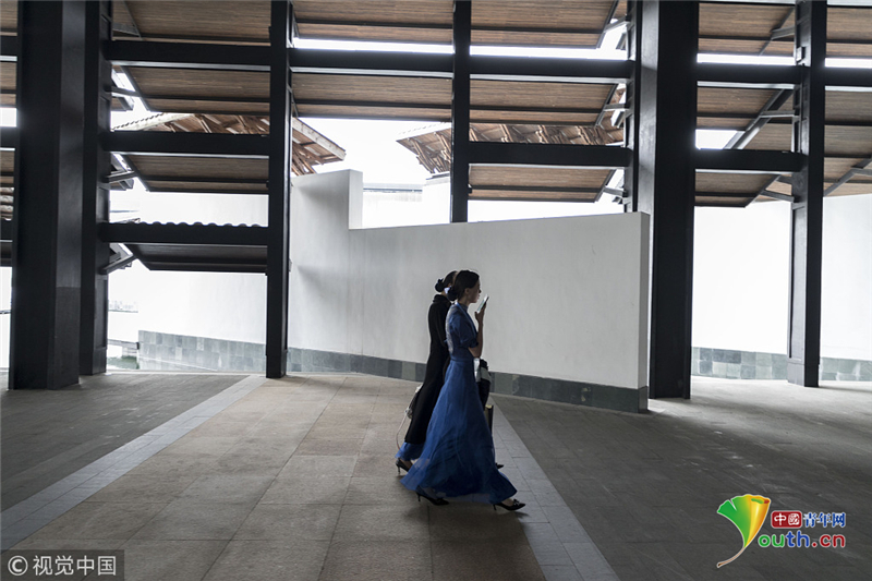 2014年11月17日,世界互聯(lián)網(wǎng)大會直播演練在浙江烏鎮(zhèn)舉行。來自浙江傳媒學(xué)院的大學(xué)生們,身著一襲青花瓷紋旗袍亮相,顯得分外嫵媚,引人注目。