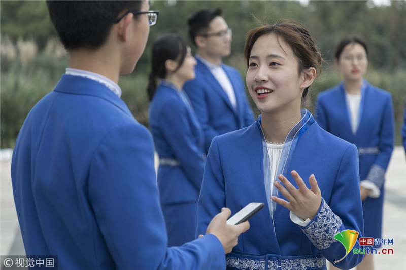 2018年11月5日,浙江嘉興,大會志愿者“小梧桐”爭分奪秒,在烏鎮(zhèn)展開緊張的實戰(zhàn)培訓(xùn)。阿凡提達(dá)/視覺中國