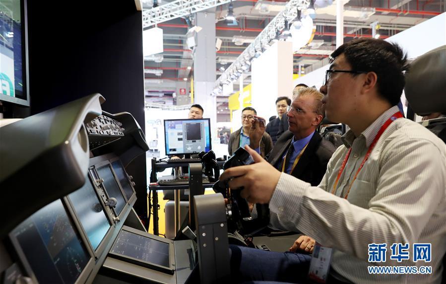 11月5日,一名參觀者在美國波音公司展臺體驗(yàn)787機(jī)型的模擬駕駛艙。 新華社記者 方喆 攝