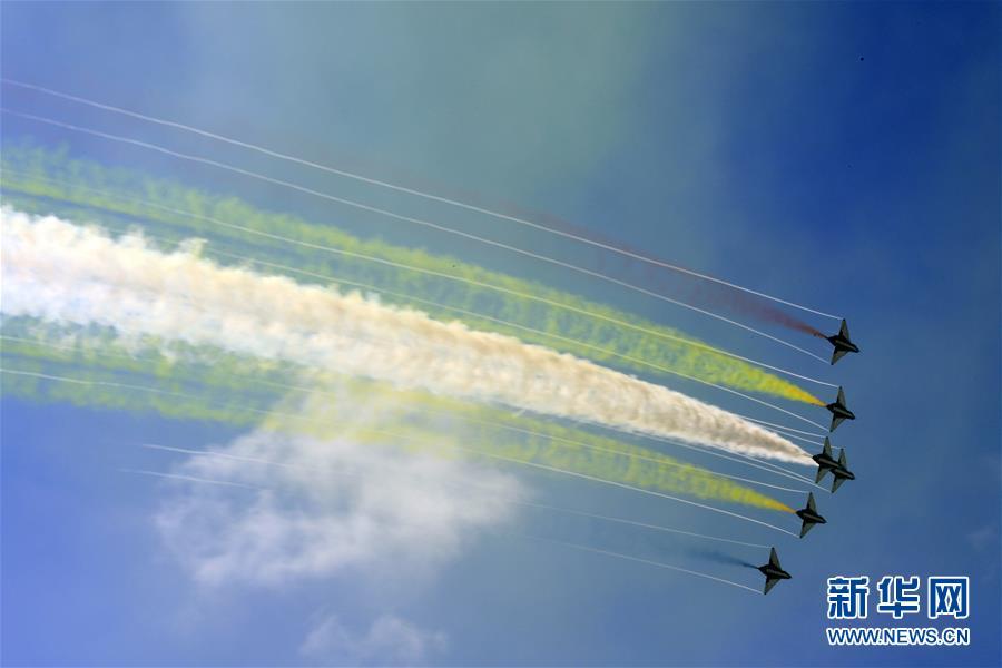 11月6日,中國空軍八一飛行表演隊在航展現(xiàn)場進行飛行表演。當日,第十二屆中國國際航空航天博覽會在珠海開幕。 新華社記者劉芳攝