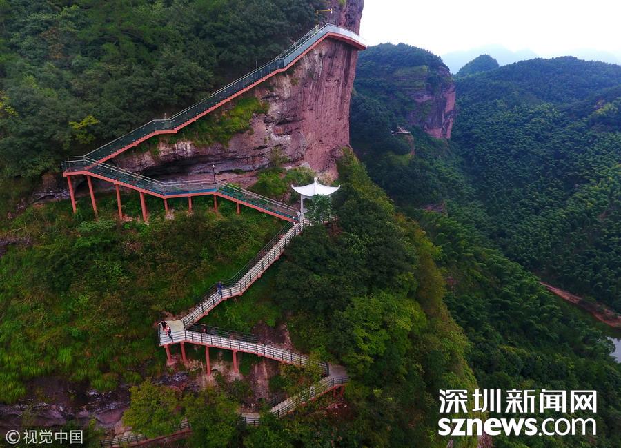 武義縣大紅巖景區(qū)在227500平方懸崖上建造的玻璃桟道,通過有關(guān)部驗(yàn)收,10月1日將開放接待游客。武義縣大紅巖是國(guó)家級(jí)風(fēng)景名勝區(qū),今年景區(qū)利用長(zhǎng)650米、高350米的懸崖峭壁建造玻璃桟道,為景區(qū)又增添了一道壯觀的景點(diǎn)。