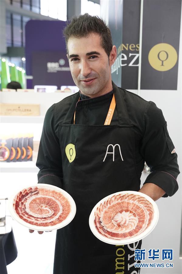 11月7日,一名廚師展示手工切好的西班牙火腿。 新華社記者 沈伯韓 攝