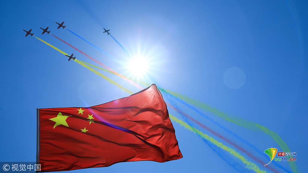 2018年11月7日,空軍紅鷹隊在廣東省珠海市第十三屆中國航空航天博覽會上進(jìn)行飛行表演。視覺中國