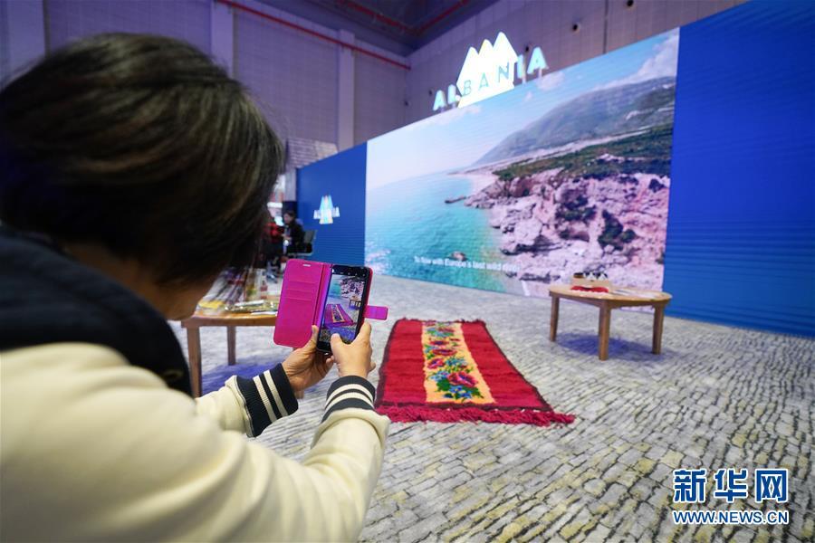 11月7日,在阿爾巴尼亞展區(qū),一名參觀者拍攝當(dāng)?shù)厣a(chǎn)的地毯。 中國國際進(jìn)口博覽會11月5日在上海開幕。國家貿(mào)易投資綜合展(國家展)是中國國際進(jìn)口博覽會的重要內(nèi)容,共有82個國家、3個國際組織設(shè)立71個展臺。 新華社記者 王天聰 攝