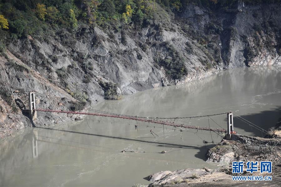 10月20日,西藏雅魯藏布江米林縣堰塞湖自然過流后,通往加拉村的大橋完全浮出江面。 10月19日13時30分,西藏雅魯藏布江米林縣堰塞湖開始自然過流。記者從應(yīng)急管理部牽頭的聯(lián)合工作組獲悉,截至20日7時,雅魯藏布江堰塞湖壩前水位已下降56米,估算留存水量1.6億立方米,堰塞湖洪水威脅得到緩解,防洪安全風(fēng)險(xiǎn)大大減輕,并將繼續(xù)降低。 10月20日,記者乘坐直升機(jī)從空中拍攝了雅魯藏布江堰塞湖自然過流的畫面。 新華社記者普布扎西攝