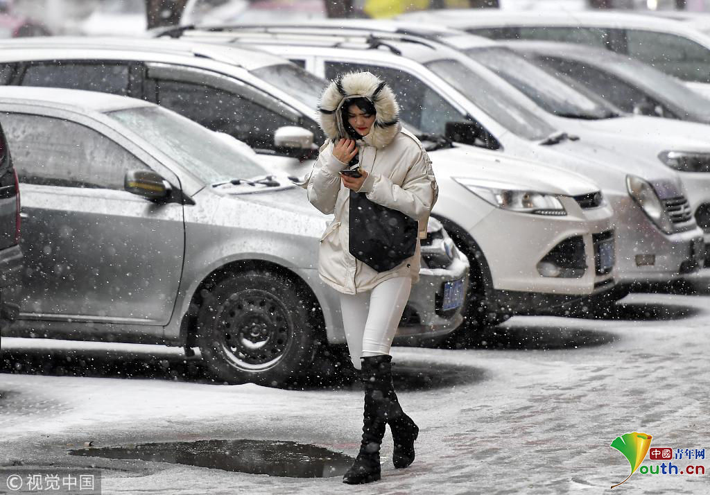 風雪中,民眾裹緊衣領腳步匆匆。圖片作者:劉新