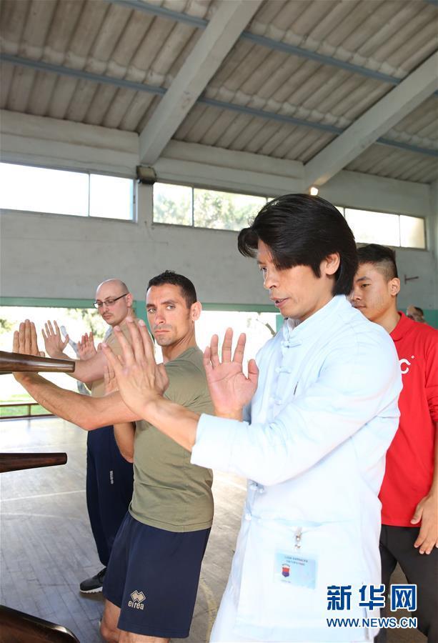 11月13日,在馬耳他首都瓦萊塔,鄭祖杰(前)向馬耳他士兵展示詠春拳。 當(dāng)日,中國國家級(jí)非物質(zhì)文化遺產(chǎn)詠春拳代表性傳承人鄭祖杰走進(jìn)馬耳他武裝部隊(duì),向官兵展示詠春拳。這一活動(dòng)是馬耳他中國文化中心與馬耳他武術(shù)協(xié)會(huì)合辦的詠春拳系列展示活動(dòng)之一。 新華社記者 袁韻 攝
