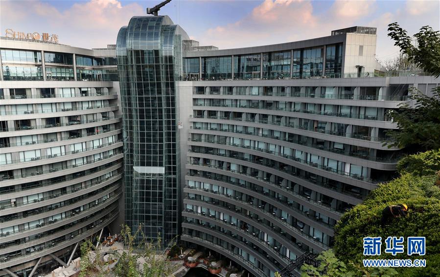 一條人造瀑布從酒店主體建筑旁的礦坑頂部流下(11月13日攝)。 位于上海松江的世茂洲際酒店11月15日正式開門營業(yè)。這家在一個(gè)廢棄采石礦坑內(nèi)建成的酒店成為上海又一新景。 新華社記者 方喆 攝