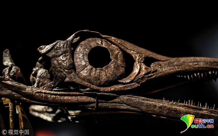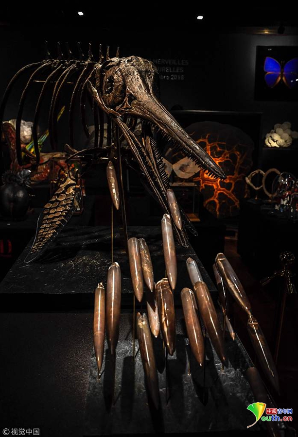 當(dāng)?shù)貢r(shí)間2018年11月19日,法國(guó)巴黎,在展出中的1.8億年前侏羅紀(jì)時(shí)期的恐龍骨架,將于11月20日在Drouot拍賣行拍賣。圖片來(lái)源:視覺(jué)中國(guó)