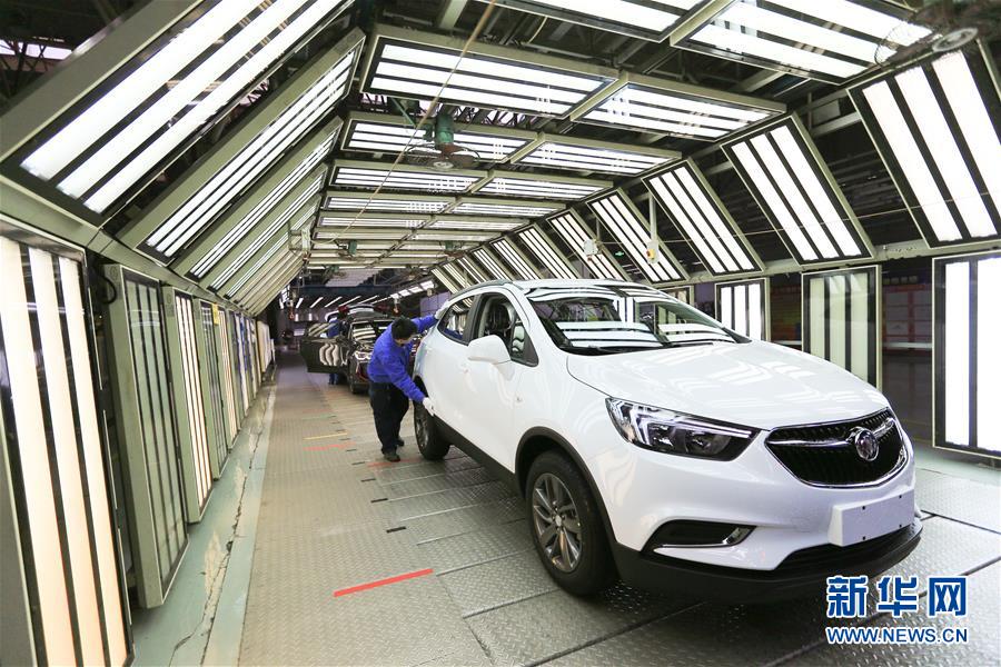 在上汽通用東岳汽車有限公司的總裝車間,工作人員對(duì)車輛進(jìn)行檢查(11月15日攝)。新華社記者王南攝
