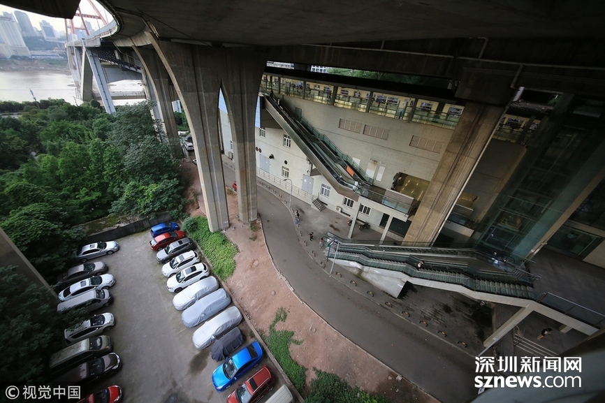 重慶洋人街景區(qū)內(nèi)的穿樓觀光索道吸引不少游客體驗。據(jù)悉,跨度長1000米的觀光索道將隨著洋人街的拆遷而搬離。中新社記者陳超 攝 2017年9月27日,重慶,南岸區(qū)某小區(qū)的“螺旋”停車場,從公路到車庫要下5層樓,司機需要轉(zhuǎn)無數(shù)個360度圈。圖片來源:視覺中國