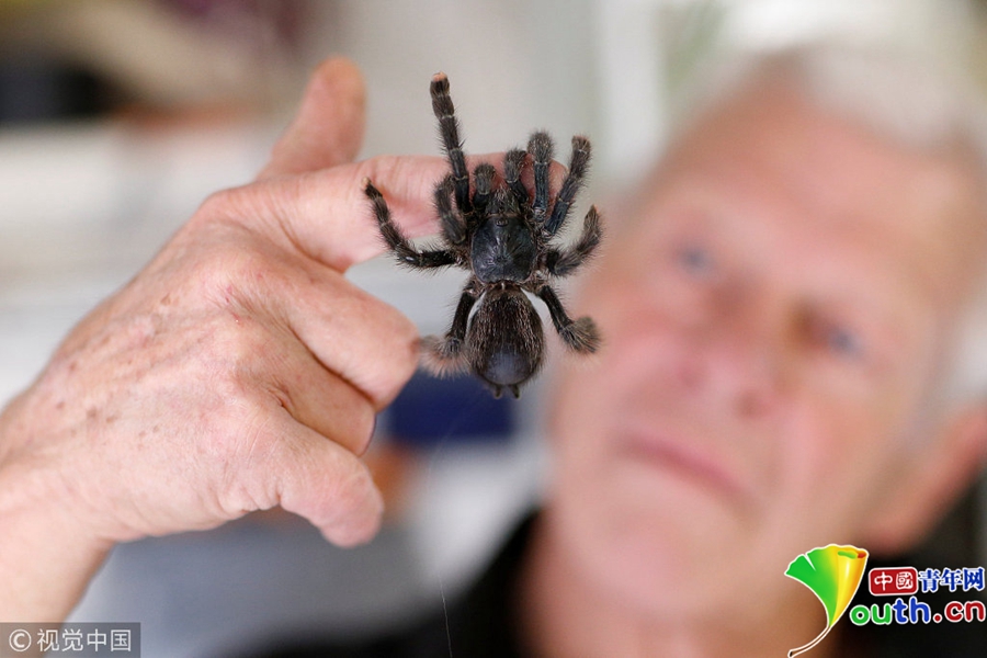 碩大的蜘蛛在手上看起來很乖巧。