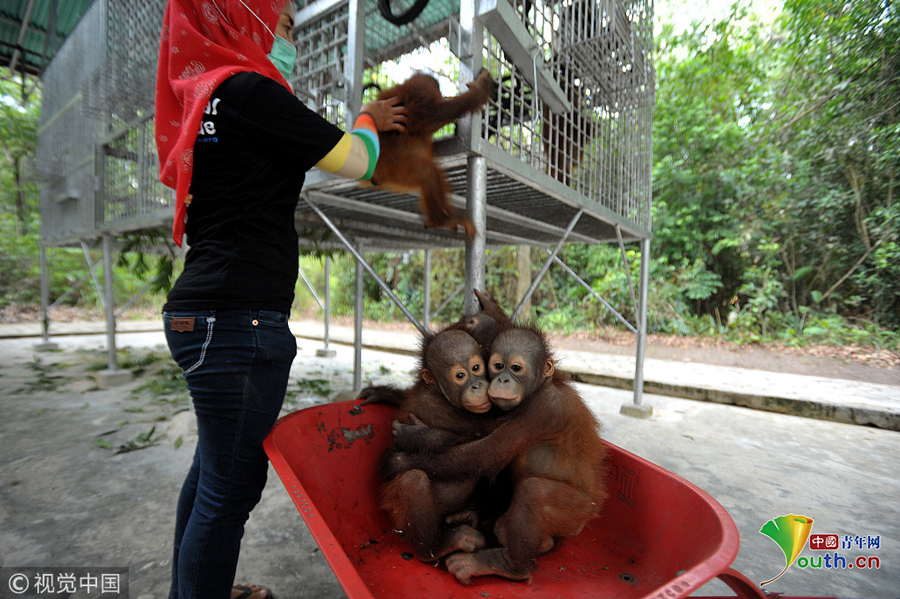 猩猩寶寶將在學(xué)校里學(xué)會(huì)爬、玩和保護(hù)自己,最后它們會(huì)被放歸自然棲息地。圖片作者:Newscom