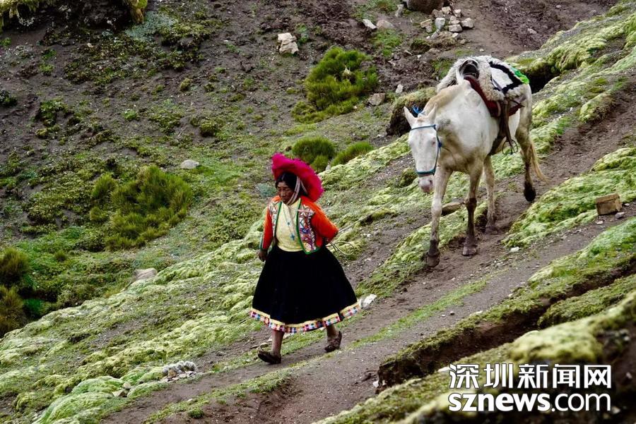 這兩年隨著彩虹山聲名遠(yuǎn)播,游客與日俱增,他們中很多人開始從事旅游服務(wù)業(yè),主要是出租馬匹供游客登山,或者在途中、山頂出售食品飲料、與游客合影等,一條致富的捷徑擺在了他們面前,美好的生活通過辛勤勞動定能實(shí)現(xiàn)。李仁奇攝