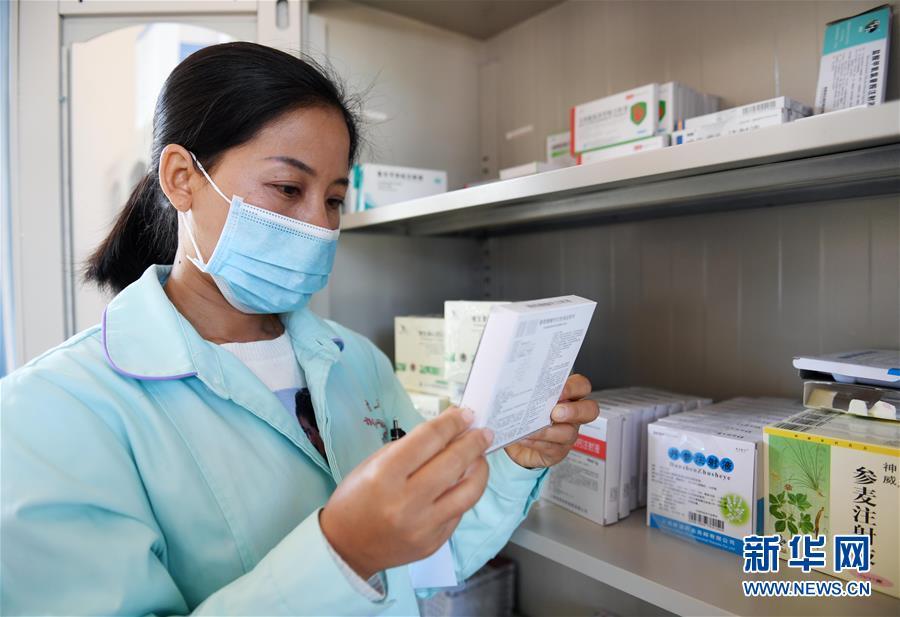 11月28日,張惠仙在巖因村衛(wèi)生室準(zhǔn)備藥品。 新華社記者 楊宗友 攝