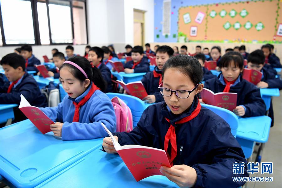 12月3日,合肥市朝霞小學(xué)的學(xué)生們在誦讀憲法。國家憲法日到來之際,各地學(xué)校紛紛舉辦主題宣講活動(dòng),對學(xué)生開展法治教育,幫助孩子們了解憲法知識。新華社記者 劉軍喜 攝