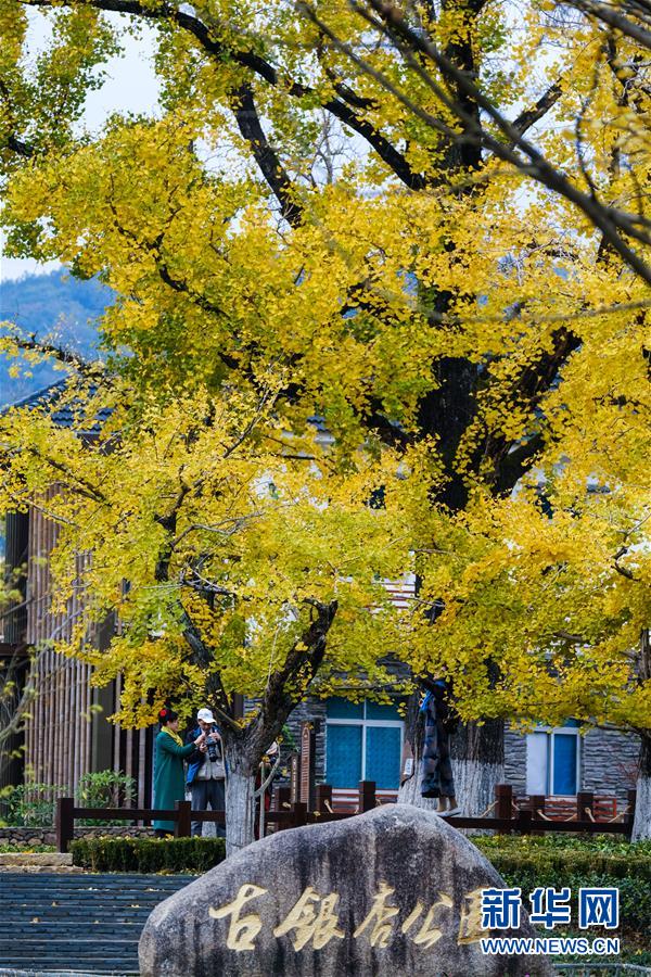 11月1日,游客在河南省嵩縣白河鄉(xiāng)下寺村古銀杏樹下拍照賞景。 深秋時節(jié),河南省嵩縣白河鄉(xiāng)下寺村的古銀杏林為小山村披上了“金甲”。漫天黃葉,遍地金色,一幢幢民居掩映在色彩斑斕的世界里,美不勝收,吸引了眾多游客賞景拍照。 新華社記者 李安 攝