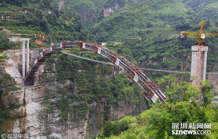 2018年5月30日,云南昭通,鸚哥大橋完成最后一段35米引橋現澆箱梁作業(yè),標志著“鸚哥溜索改橋”主體工程完工,進入最后階段的橋面鋪裝和防護欄施工,預計6月底建成通車。